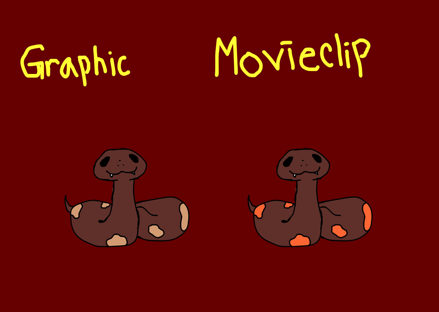The main difference between graphic and movie clip symbols is that a graphic symbol's timeline is tied to the main timeline and placed there , while a movie clip symbol has its own independent timeline. (Moving in GIF vs Still image in GIF)